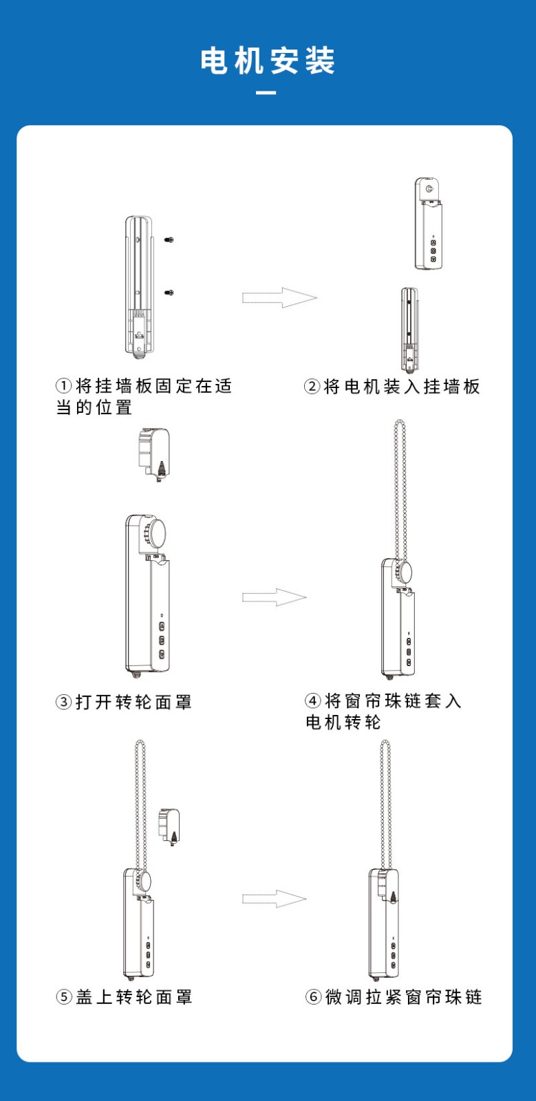 此產品適用于拉珠卷簾,可以把傳統的拉珠卷簾改變為智能電動窗簾,安裝簡單,操作方便。安裝后可通過遙控器、語音、手機APP等控制窗簾升降。
